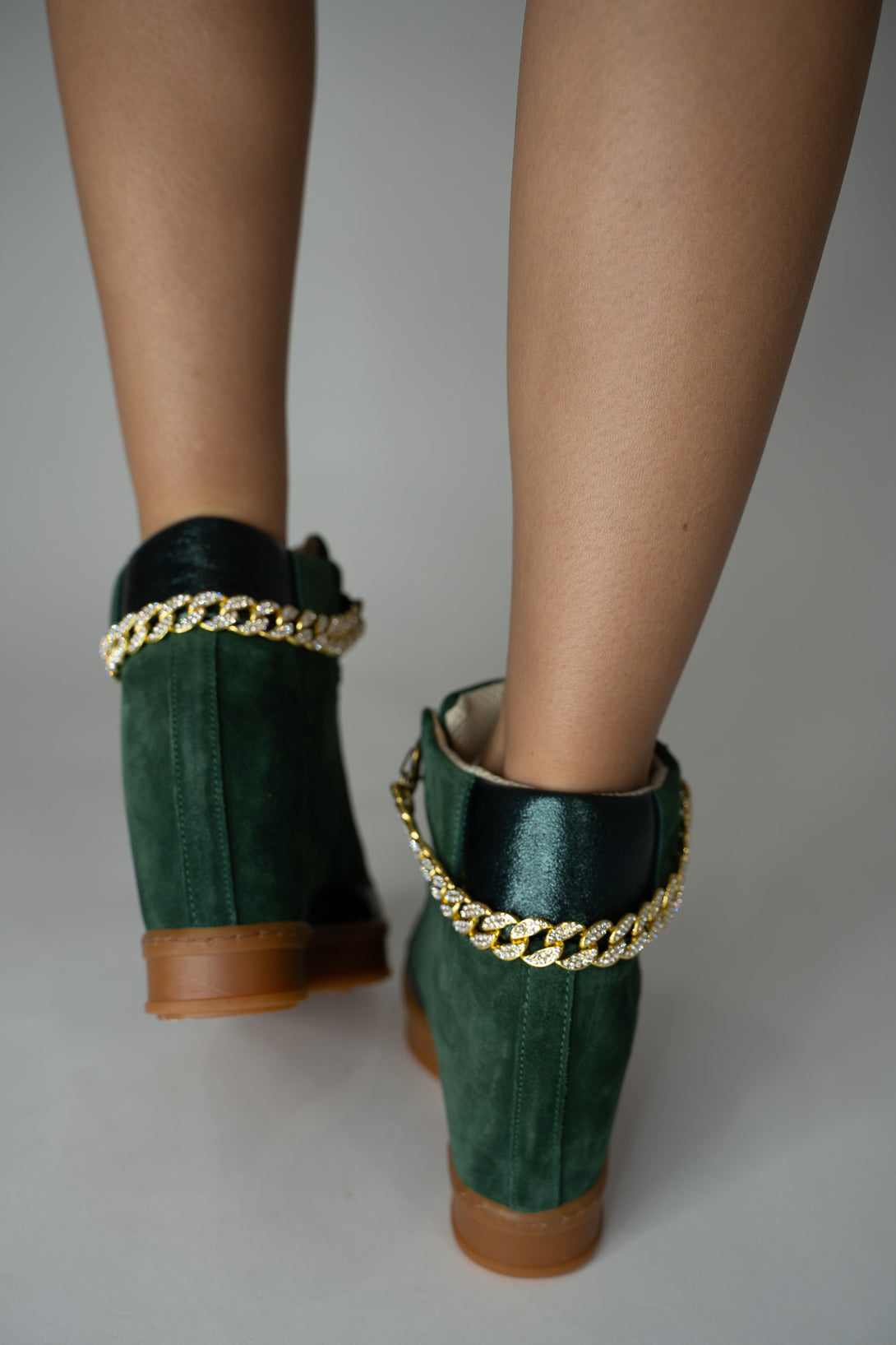 Fearless in Forest Green Suede with Gold Flier Chains
