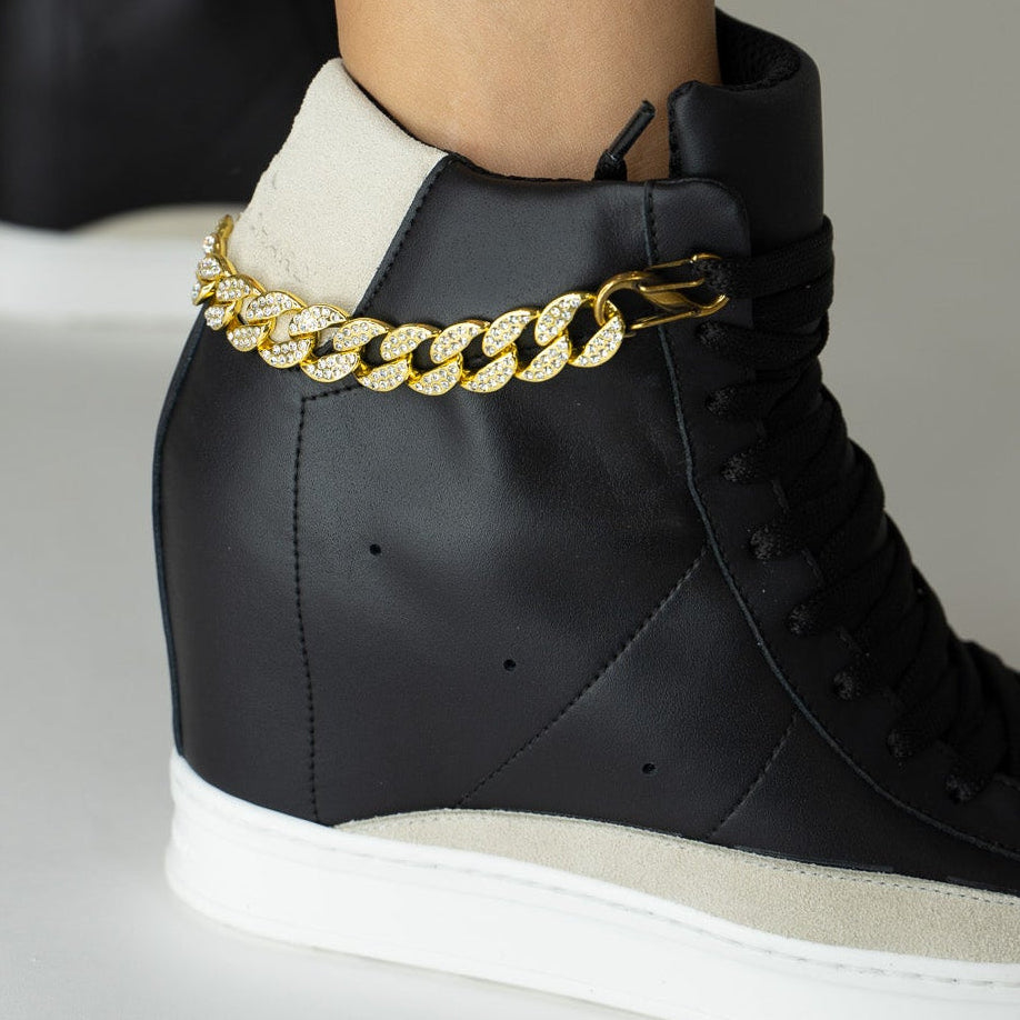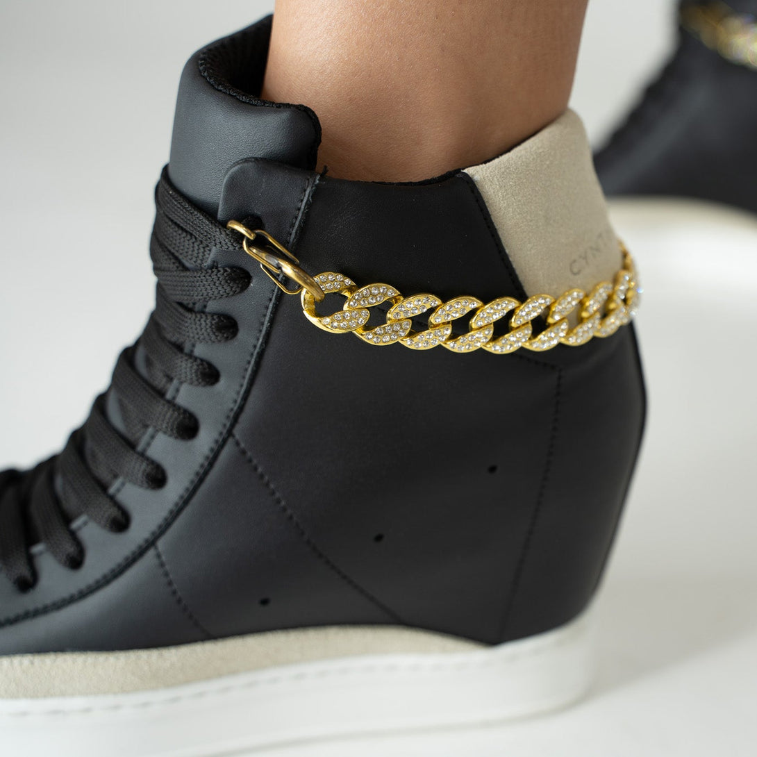 Fearless Black Wedge Sneaker with Gold Flier Chains