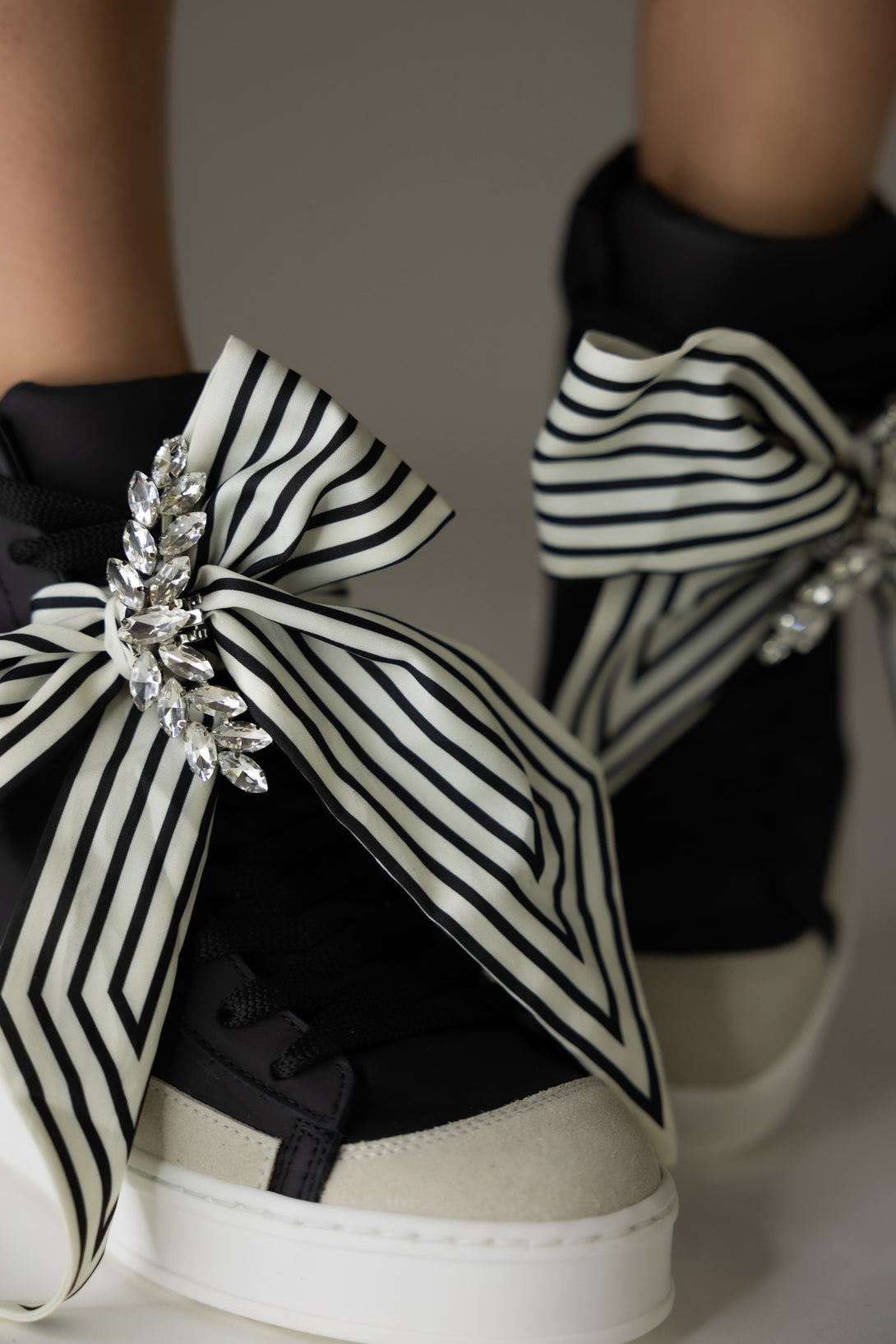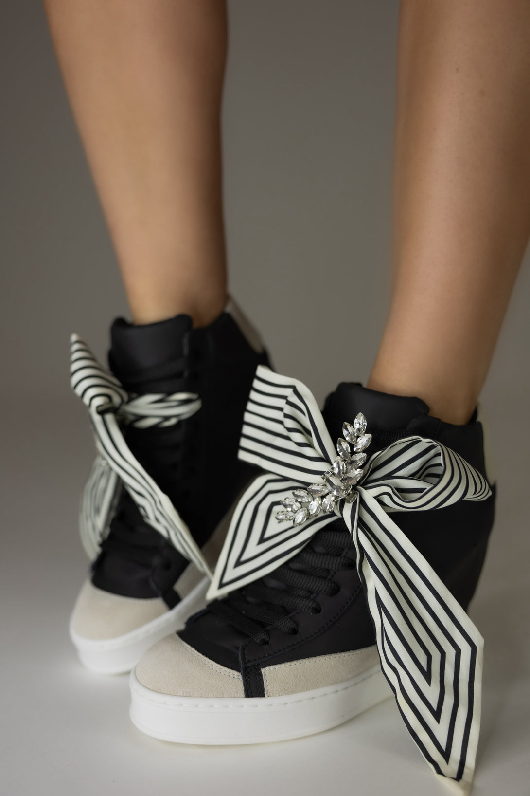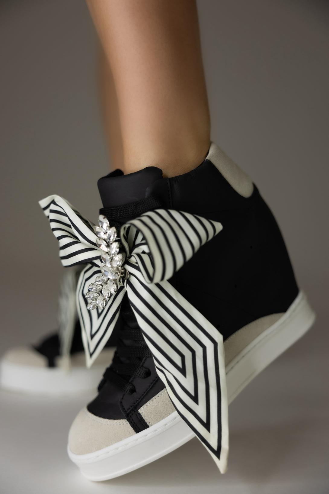 Fearless Black Celine Bow High Top Wedge Sneaker